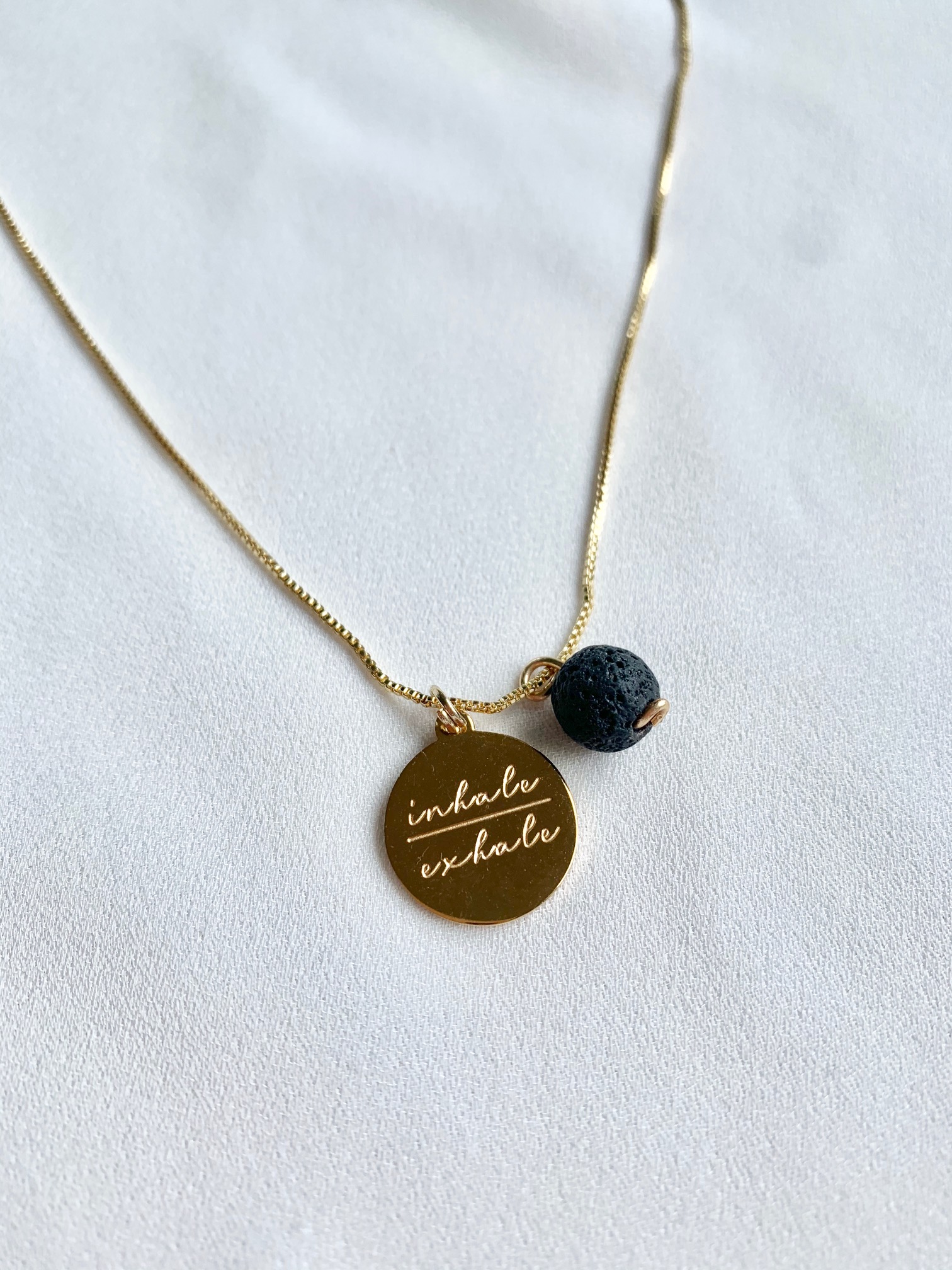 Inhale – Exhale essential oil lava rock diffuser necklace.